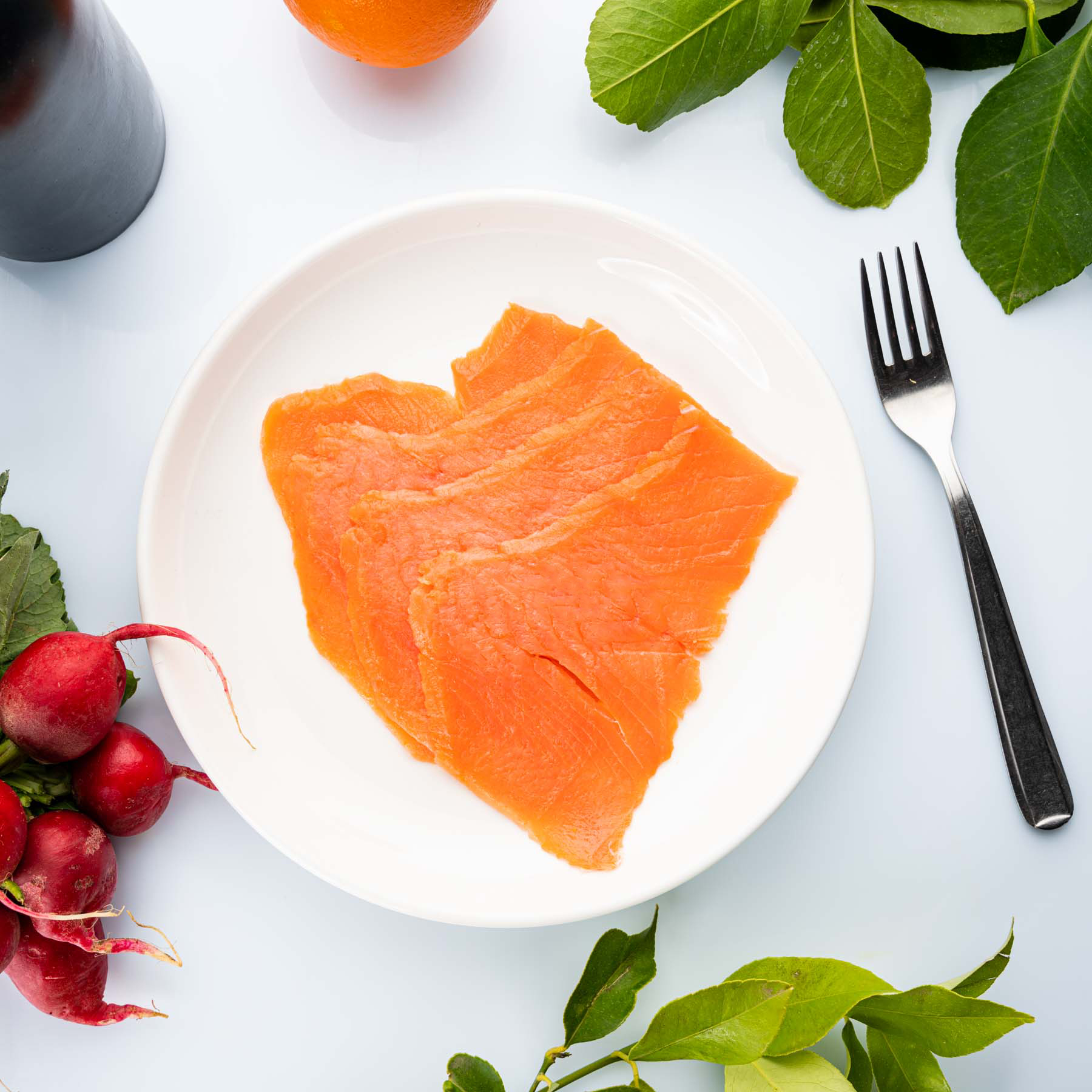 Pregiato salmone scozzese, premiato con il massimo delle stelle al Great Taste Award. Prodotto secondo i metodi tradizionali, questo salmone dell’Atlantico viene salato a mano con sale marino, e poi appeso a una fune e affumicato per tre giorni bruciando lentamente le botti di quercia usate per conservare il whisky scozzese. Fare l’affumicatura con il salmone appeso anziché disteso conferisce al pesce un sapore più gustoso e lo mantiene più tenero. Ciascun salmone viene poi affettato a mano individualmente!